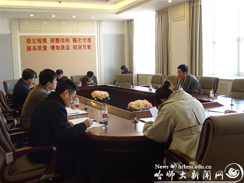 会上,王广明同志首先传达了黑龙江省高校工委、黑龙江省教育厅《关于在全省高校开展思想政治理论课建设专项检查工作的通知》,并在会议上作了重要讲话。他强调以下几点:第一,要统一思想,提高认识。高等学校思想政治理论课承担着对大学生进行系统的马克思主义理论教育的任务,是对大学生进行思想政治教育的主渠道。充分发挥思想政治理论课的作用,是社会主义大学的本质特征,是党和国家事业长远发展的根本保证。要把思想政治理论课建设作为学校人才培养工作评估体系的重要组成部分,作为学校人才培养的一项重要内容,作为学校内涵建设的一项重要措施。因此此次评估是对学校思想政治教育工作的一次重要检查,相关各职能部门、二级学院要高度重视,认真做好各项迎评筹备工作。第二,要各司其职,密切配合。各职能部门要按照评估指标体系的要求,在做好本部门的工作同时紧密配合相关职能部门,高质量地完成本次检查工作。第三,要做好分工,强化责任。各部门主要负责人要进行深入研究,明确重点,对本部门负责的工作任务进行分解,明确具体负责人,强化责任意识。第四,各部门要坚持“以评促建,以评促改,以评促管,评建结合,重在建设”的原则,对照有关指标体系逐项核对,实事求是地总结经验、查找问题,研究制定切实可行的整改措施,全面提升我校思想政治理论课教学水平和大学生思想政治理论素养。