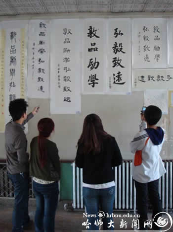 图 学生在欣赏书法作品