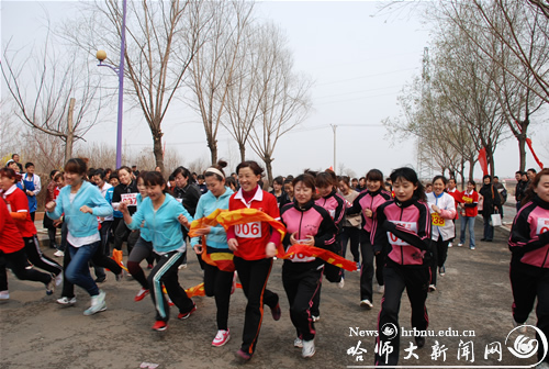 为迎接我校建校60周年,丰富职工的业余文化生活,增强体质,锻炼体魄,4月20日,由后勤集团工会举办的2011年“校庆杯”职工春季越野赛在松北校区鸣枪开赛。后勤集团党政领导李金贵、廖洪明、徐振岐、于宏元、王明刚、朱春华出席活动。集团机关及各部门(中心)9支代表队150余名选手参加了激烈的越野角逐。比赛按年龄界限划分为青年男子组、中年男子组、青年女子组和中年女子组四个组别。
