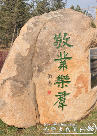 为庆祝我校建校60周年,近日哈师大齐齐哈尔校友会为学校捐赠了一块镌刻有游寿先生题词为“敬业乐群”的石刻。