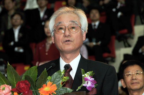 图18 国外友好学校代表、日本北海道教育大学校长本间谦二致辞