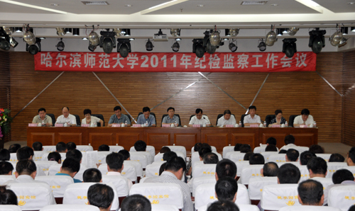 2011年6月17日,在松北校区梦溪宾馆二楼会议室召开了我校2011年纪检监察工作会议,党委书记,党委副书记、校长王选章,党委副书记王广明,党委常委、副校长李凤飞,党委常委、副校长曹百瑛,党委常委、副校长徐晓风,副校长臧淑英,党委常委、纪委书记蒋晶洁,党委常委、工会主席张国昭,党委常委、组织部部长尹占军,总务长马明出席会议。学校副处级以上干部,学校特邀纪检监察员参加会议。会议由王广明主持。