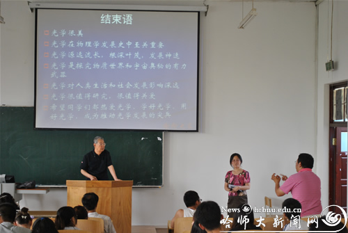 6月23日下午,清华大学物理系郭奕玲教授来到物理与电子工程学院,在理工2号楼311教室给广大师生做了题为“诺贝尔物理学奖与光学的发展”的报告。长达2个小时的报告,内容丰富,数据翔实,受到师生的热烈欢迎,会后学生争相与郭教授合影留念。