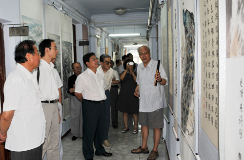 党委书记参观了书画展。校党委书记认真观看了展出的每幅书画作品,指出,老同志们的书画作品体现了他们老有所学、老有所为、老有所乐的精神风貌,并表示学校将一如既往地关心、服务离退休老同志,希望他们不断陶冶情操,快乐生活,继续为学校发展建设献计献策。