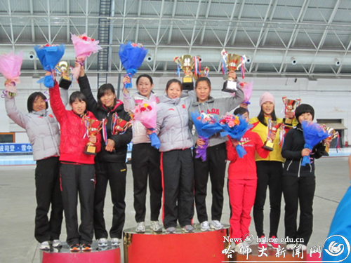 2011—2012年度全国速度滑冰冠军赛暨第十二届冬季运动会速度滑冰预赛于11月24日至27日在黑龙江省冰上基地速滑馆开赛。我校体育科学学院运动训练专业2011级刘晶、2007级梁丹、2007级付春艳获得女子集体滑金牌,付春艳还以4分22秒27的成绩在女子全能3000米比赛中夺冠,2009级郭强和2007级齐帅分别获得男子、女子短距离全能银牌。
