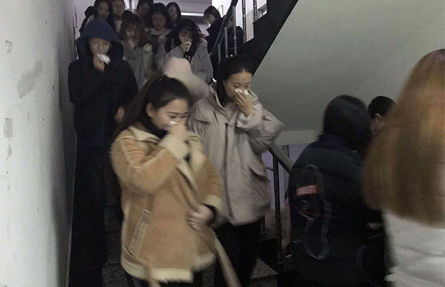 在保卫处同志指挥下,辅导员老师和各班班长及各寝室长讯速清点人数,其他工作人员检查各寝室人员疏散情况,记录滞留的人数及受伤人员数和疏散全体人员所需的时间。