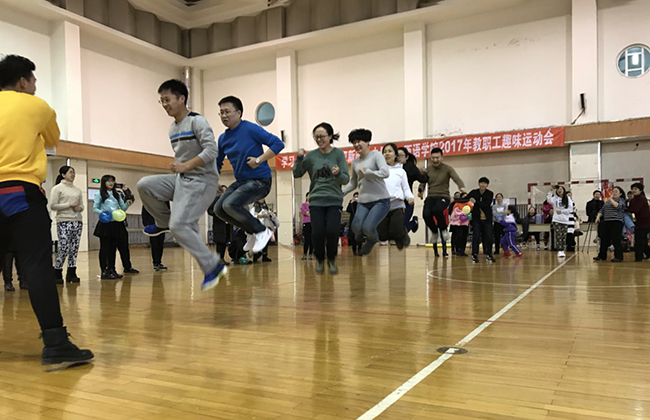 本次运动会包括踢毽子、报团取暖、掷乒乓球、保龄球大战等个人项目及齐心协力、跳大绳等集体项目。比赛开始后,整个赛场顿时沸腾起来,加油助威声络绎不绝。比赛时,裁判员精神饱满,有序地组织教工们进行比赛;赛场上教职工们大显身手、奋勇争先,场面和谐热烈。