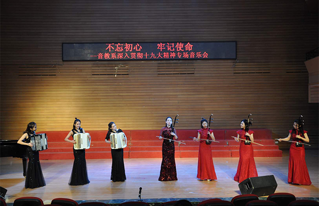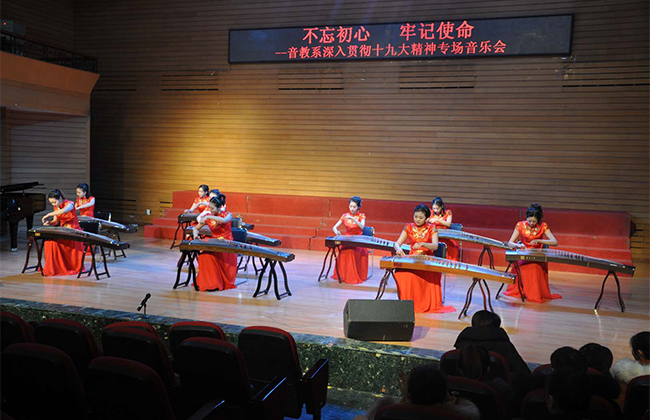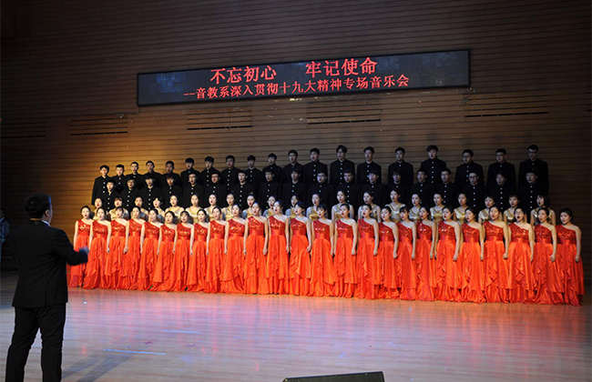 (阮洋/文)12月26日,音乐学院音乐教育系在音乐厅举办了“不忘初心 牢记使命——音教系深入贯彻学习十九大精神专场音乐会”。音乐会以优美动人的旋律抒发了学院师生爱党爱国的情怀,进一步凝聚了师生同心共筑中国梦的强大力量。
