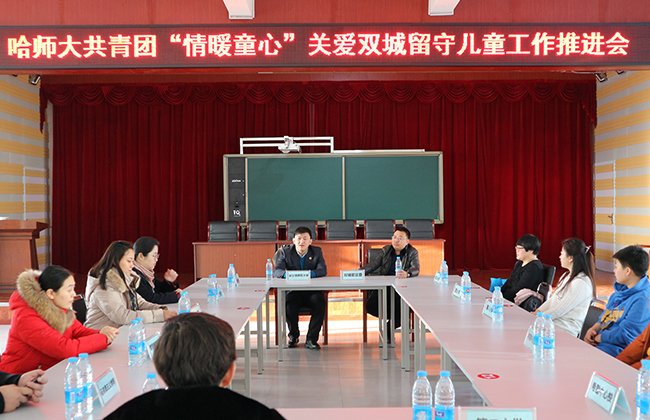 (刘强/文)1月3日,哈师大共青团“情暖童心”关爱双城留守儿童工作推进会在哈尔滨市双城区第八小学召开,我校团委副书记王若虎,结对学院团委负责人,双城区团委副书记高清泉,双城区第八小学、临江中心校等五所对接学校负责人,哈师大学生志愿者代表等参会。