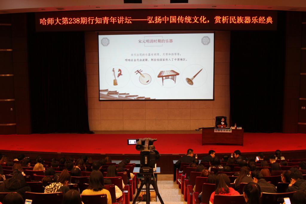 中华文明源远流长,是四大文明古国中唯一没有断代文化的国家。讲座中,孟璐分享了器乐的发展史、器乐的种类和演奏形式,并为同学们介绍了华彦钧、刘天华等民族音乐名家,从增强文化自信和国家文化软实力的高度,品析民族器乐经典之作,探寻优秀传统文化中的时代价值,为广大同学上了一堂生动的传统文化课。