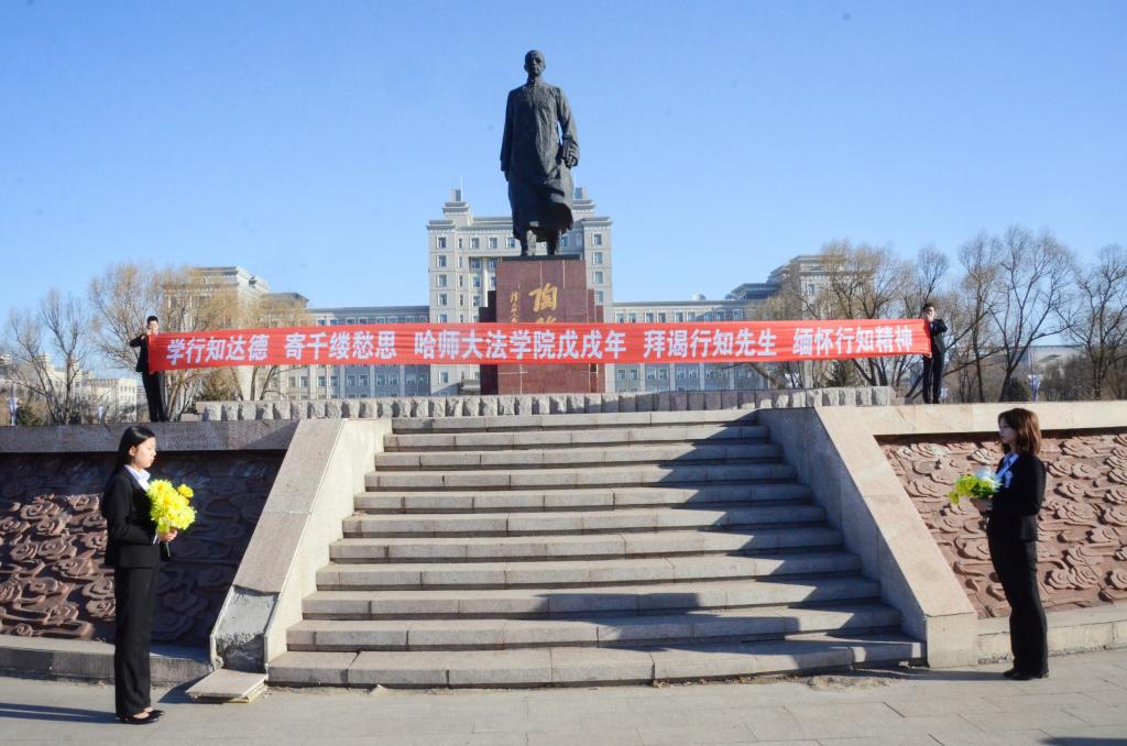 活动开始,学生代表向行知雕塑敬献花束,以表达心中的缅怀之情。全体师生默哀,为陶行知先生这位伟大的教育家,献上心中最崇高的敬意。随后,学生代表向行知先生许诺,定将在今后的道路中弘扬行知精神,为中国的法治建设贡献力量,激励大家要以陶行知先生为楷模,继承先生热爱祖国和知行合一的精神,成为一名德法兼修的优秀法学学子,并提出了要学习先生追求真理、与时俱进的革命品质和热爱祖国、教育为公的高尚品德的要求,鼓励同学们以卓越表现为中国法治建设助力。