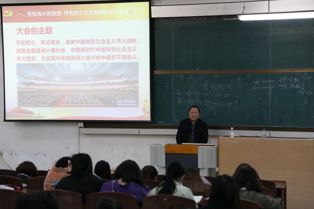 (仲微微/文)新思想引领新时代,新时代呼唤新作为。为使在校大学生更全面、准确、扎实地理解和把握习近平新时代中国特色社会主义思想和党的十九大精神,我校专门成立了辅导员十九大精神宣讲团。宣讲团自3月初启动以来,学校党委高度重视,宣讲团成员精心准备、认真备课,历时两个月,在全校22个学院先后开展了51场宣讲活动,共有12084名学生听取了本轮宣讲报告。宣讲团现已圆满完成了本学期宣讲任务。