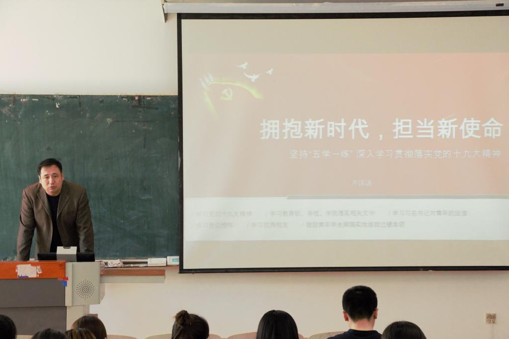 从3月13日至5月9日,近两个月的时间里,宣讲团成员们不仅为各学院的青年学生带去全面深刻、透彻详细的宣讲内容,还深入到学生中去,与同学们互动交流,针对大学生关心的热点焦点问题,结合实际进行剖析解读。面对90后的新青年,宣讲团成员以说清讲明,把党的十九大精神学习宣传贯彻做实做细做深为宗旨;以学深悟透,让党的十九大精神落地生根入脑入心为任务;以务实笃行,引领青年学生把思想行动统一到党的十九大精神上来为目标;依托“学、讲、研、用”四维一体的理论学习模式,鼓励青年学生坚持阅读原文原著,深入学习十九大报告精髓;希望通过宣讲的方式引导学生,穿针引线地将同学们所学所悟的理论知识结构化、系统化,以便更全面、扎实地掌握十九大精神内涵。通过宣讲使广大青年学生在学习的基础上深入研究,完成从理论学习到理论研究的转化,以理论研究深化理论学习;进一步加强巩固了青年学生理论知识,让他们正确认识了时代责任和历史使命,坚定了理想信念,矢志为“中国梦”不懈奋斗。用习近平新时代中国特色社会主义思想和十九大精神武装头脑,为青年学子构筑青春底色,引领他们筑梦新时代。