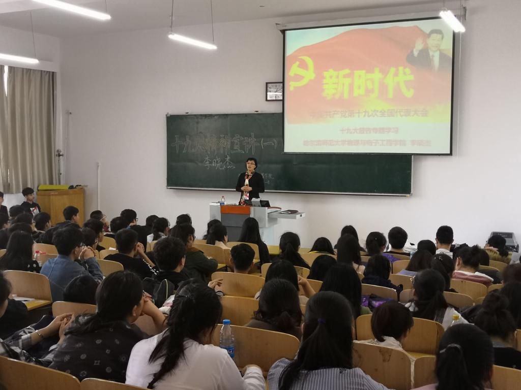 透彻深入的宣讲、鲜活生动的解读,让广大青年学生深受鼓舞。“宣讲很生动,牢牢抓住了同学们的注意力,理论虽高屋建瓴,但举的例子却非常鲜活生动,让我们对党的十九大精神有了更深入的认识”,“宣讲内容全面,紧扣我们大学生实际,有高度也有温度,让人心潮澎湃”等评语道出了同学们聆听宣讲后的真实感受。大家还纷纷表示,今后要更加深入系统地学习十九大报告,深刻领会报告的丰富内涵,把思想和行动统一到党的十九大精神上来,以习近平新时代中国特色社会主义思想为行动指南,不忘初心、牢记使命,求真学问、练真本领,立鸿鹄志、做奋斗者。