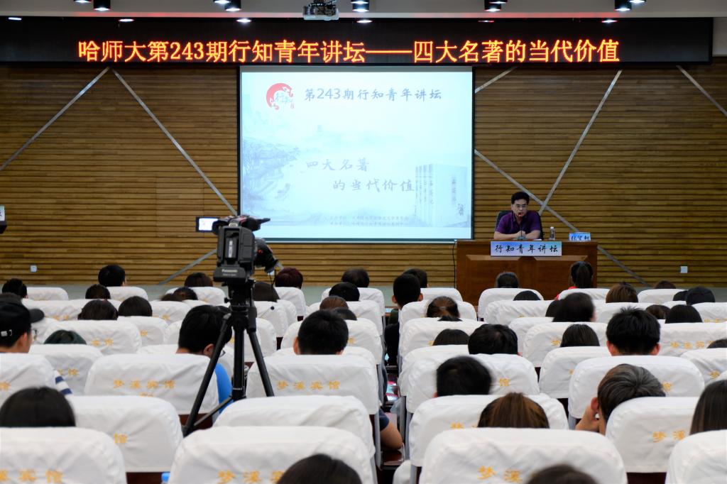 (刘强/文)近日,黑龙江文化学者、百家讲坛主讲人张望朝应邀做客哈师大第243期行知青年讲坛。讲座主题为“四大名著的当代价值”,张望朝与师大学子分享了他在阅读文学著作时的见解。本次活动继续采用微信索票和现场索票两种索票方式,梦溪宾馆二楼会议室座无虚席。