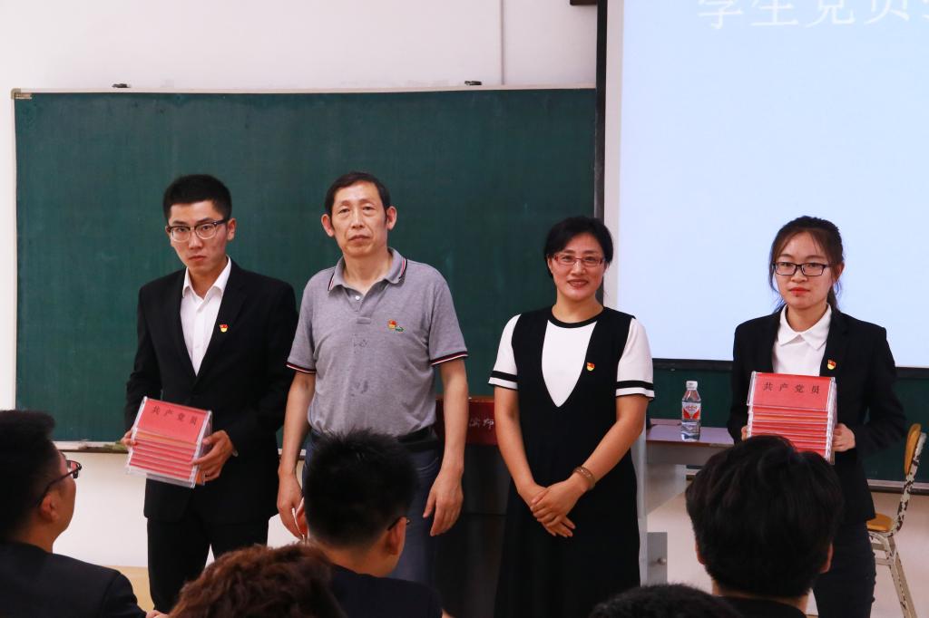 (李明/文)为扎实推进“两学一做”学习教育常态化制度化,全面落实“112349”工作模式,发挥学生党员的先锋模范作用,6月29日下午,物理与电子工程学院在理工二号楼211教室举行学生党员挂牌考试授牌仪式。学院党委书记刘旭繁、党委副书记李晓杰和各年级辅导员及全体学生党员参加了本次活动。