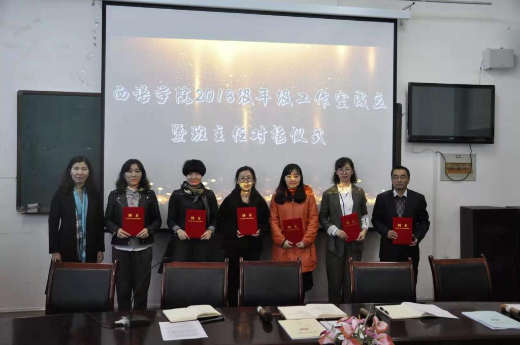 (桂永强/文)为深入贯彻学校思想政治工作会议精神,全面落实《大学生思想政治教育“112349”工作模式实施方案》,不断推进“三全育人”工作的深入开展,充分发挥专业教师的实践育人作用,2017年西语学院在兼职班主任工作探索的基础上成立了年级工作室。西语学院于2018年10月10日在西语楼527室举行2018级年级工作室成立暨班主任对接仪式。西语学院领导班子、全体兼职班主任、辅导员以及18级各班班长团支书参加了此次会议,会议由学院党委副书记刘春玲主持。