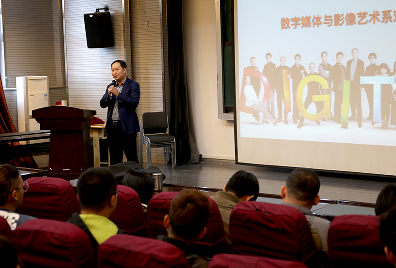本次主题活动由史伟争主持,涵盖“专业介绍”、“实践教学”、“创作观摩”、“业界交流”、“名家讲座”五部分内容。重点围绕数字媒体艺术、摄影两个专业学习内容、课程体系、实践实训方式、学生获奖、就业与深造等学生关心的学习方面进行了详尽的介绍和交流。