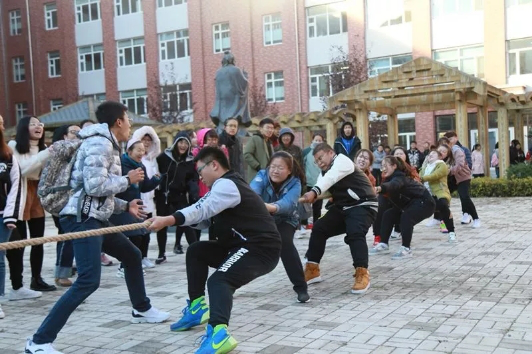 (宋鸽/文)为增强学生的体育活动意识与集体荣誉感,促进新生班级之间的集体凝聚力,丰富学院早操形式,教师教育学院于10月11日早,在崇师楼中心花园举办了2018级“新生杯”校园拔河比赛。学院党委副书记李志宇、副处级辅导员吕会庆及2018级全体学生出席本次活动。
