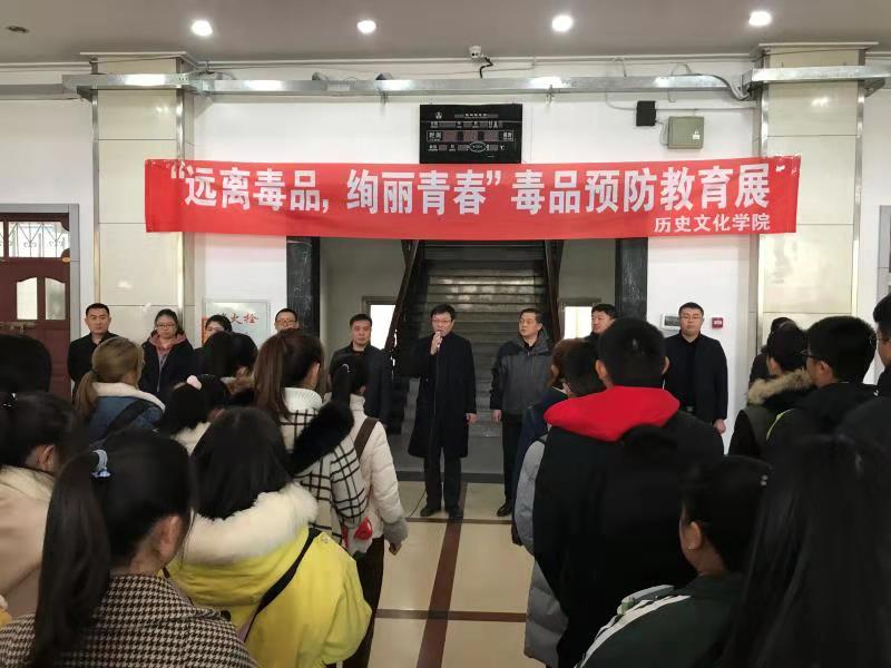 (金丽雪/文)为进一步加强大学生毒品预防教育工作,有效遏制毒品滥用问题在大学生群体中发展蔓延,确实提高大学生识毒、辩毒、防毒、拒毒的能力。11月8日,历史文化学院与黑龙江省博物馆联合举办“远离毒品,绚丽青春”毒品预防教育展活动。学校学学生工作部(学生处)、党委宣传部、保卫处及学院领导们参加了此次活动。此次活动由学院副院长李斌主持。