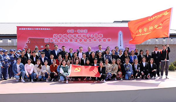 为缅怀抗联英雄,传承红色基因,讲好龙江故事,进行党性教育,4月28日上午,数学科学学院组织师生代表,前往双城区三五将军文化博物馆,参加纪念哈尔滨解放73周年暨东北抗联英雄李敏生平事迹展活动。学院党委书记李世龙、党委副书记和艳民、副处级辅导员王敬国以及学院三办主任、团委书记、教师党支部书记、教师代表,研究生、本科生学生代表、历史文化学院的研究生代表等60余人参加了此次活动。