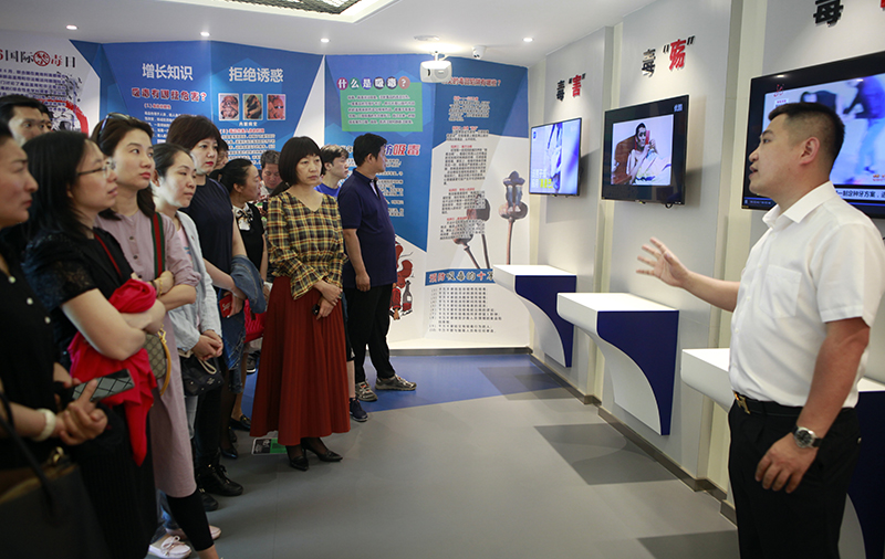 参观过程中,南岗区禁毒警示教育基地张铭泽警官从百年前的鸦片战争讲起,借助实物、图片、模型、视频短片等,从毒品的种类、毒品的危害做了详细讲解。教师党员们认真聆听专业解说,全方位、多角度了解了百年中国禁毒史、典型毒品案例、禁毒成果及禁毒人民战争取得胜利的事迹。展厅内一幅幅生动的禁毒教育照片、一幕幕触目惊心的吸毒者悲惨经历、一件件惊心动魄的真实案例,让教师党员们受到了深深的触动。