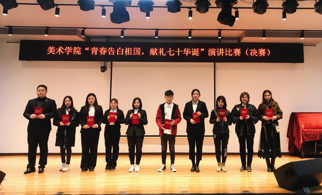 (屈怀东/文)为庆祝中华人民共和国成立70周年,继续推进我校“不忘初心,牢记使命”主题教育,增强同学们爱国意识,加强爱国教育,提高综合素养,10月16日下午,美术学院在江南校区双创园举办庆祝祖国70周年“青春告白祖国,献礼七华诞”主题演讲比赛(决赛)。