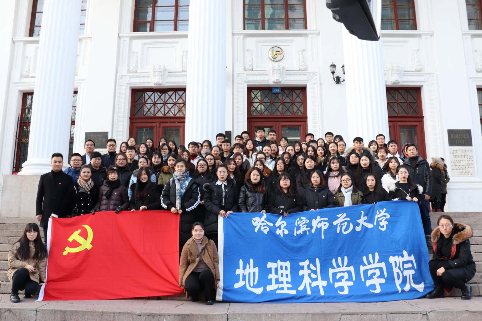 东北烈士纪念馆位于哈尔滨市南岗区一曼街,日伪时期为哈尔滨警察厅。在一下午的时间中,地理科学学院党员带着对先烈的缅怀之情参观了纪念馆。纪念馆向大家展示了许多抗战先烈的遗物,先烈事迹直击党员内心。驻足在烈士遗物前,每一位党员都深刻感受到先烈不怕牺牲的革命精神与坚定的革命信仰,每一位党员都被先烈的事迹深深的感染。在参观之后,由辅导员老师带领全体党员在党旗面前庄严宣誓,党员高举右拳,重温入党誓词。在保家卫国、救亡图存的昨天,先烈用鲜血保卫国家换取国家的和平安定;在高举社会主义旗帜的今天,地理科学学院全体党员不忘初心,通过学习先烈抗战精神,更加坚定了自己为人民服务的理想信念。