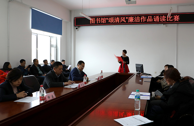 (孙儒/文)11月18日下午,图书馆组织全体党员在江北校区四楼会议室举办了“颂清风”诵读比赛。本次活动是我校纪委“廉洁教育活动项目”下的“廉洁教育活动”建设项目之一。图书馆领导班子成员参加了本次活动并担任比赛评委。