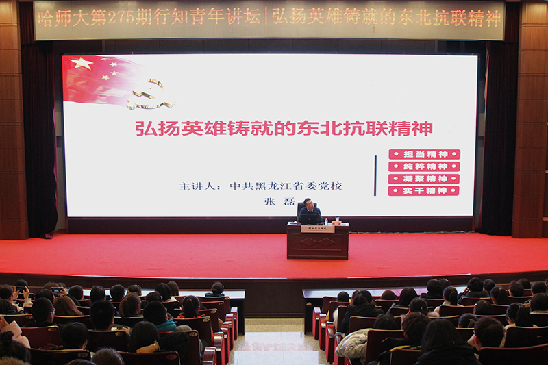 (张柏卓然/文)正值我校全面深入开展“不忘初心,牢记使命”主题教育之际,11月28日晚,中共黑龙江省委党校党史党建教研部副教授张磊应邀做客我校第275期行知青年讲坛。本期讲坛以“弘扬英雄铸就的东北抗联精神”为主题,带领师大学子回顾中华民族壮丽的英雄史诗。