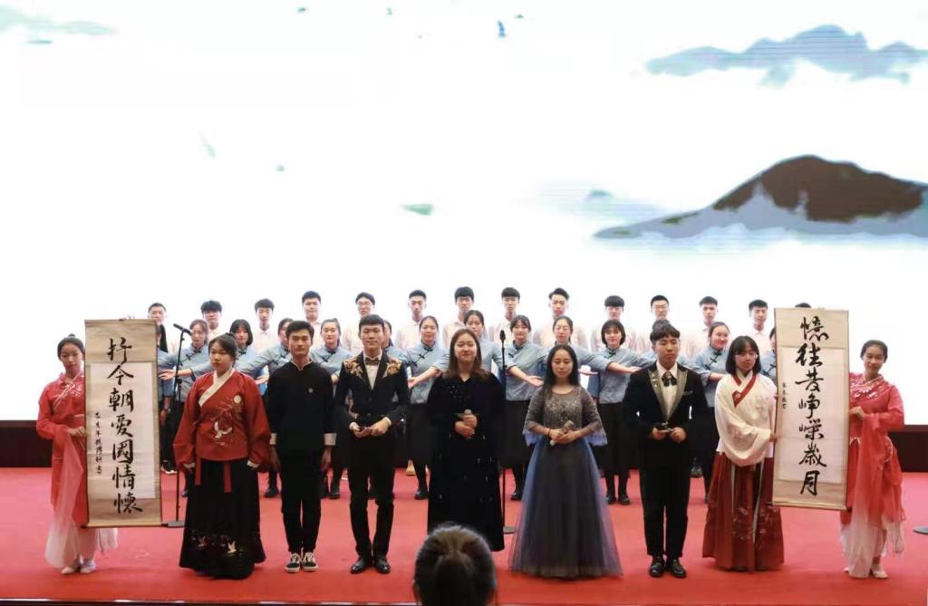 伴随着“矢志初心,为梦追逐”活力团支部的展示,本次活动正式拉开了序幕。六位2018级团支书代表学院团委50个基层团支部诠释了新时代共青团支部的使命、引领、凝聚、服务、学习创新、特色六个方面内容,全方位、多角度地向大家展示了在校、院团委领导下团支部的蓬勃风貌。随后,全体师生起立面对国旗高唱国歌、团歌,全场气氛庄严肃穆。本次团日活动共分为三个篇章。第一篇章为“历史回眸——忆峥嵘岁月”,《龙文》、《红色记忆》等节目将历史以表演的形式搬上舞台。这些节目不仅帮助学生重温历史,感怀先烈的英勇事迹,而且号召地理青年自觉担当时代使命,执笔共绘壮丽篇章。第二篇章为“现实之境——向信仰致敬”,《致敬英雄楷模—黄大年》、《戎装青春》、《我爱你中国》向同学们展示了伟大祖国近年来的发展变化,激发了学生的民族自豪感,鼓励学生积极投身国家建设,不忘初心、牢记使命,勇做新时代青年。其中《致敬英雄楷模——黄大年》是学院结合专业情志教育用两年时间倾力打造的“讲好身边榜样”的作品。它向同学们传递了地理之子、时代楷模黄大年一生报效祖国,敬业钻研、舍小我成大我的爱国情怀。第三篇章为“未来畅想——展青春风采”,舞蹈《Like it》、《我们都是追梦人》等歌舞串烧等节目在展现学生青春风采的同时,进一步增强了学生的爱国情、报国志,凝聚起砥砺新征程、奋进新时代的伟大聚合力。