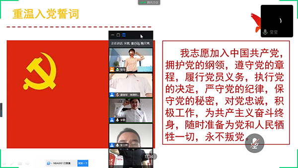 为进一步加强毕业生党员的党性修养、激发党员意识,弘扬爱国主义精神,传承行知精神,积极落实学校党委《关于在2020届毕业生党员中开展“不忘初心跟党走,爱国抗疫当先锋”主题活动》的工作要求,地理科学学院党委于6月6日上午通过腾讯会议线上开展了“不忘初心跟党走,爱国抗疫当先锋”主题系列活动。学院党委书记蒙国军、正处级辅导员张立辉,全体辅导员、各党支部书记及全体2020届毕业生党员参加活动,活动由学院团委书记陈莹莹主持。