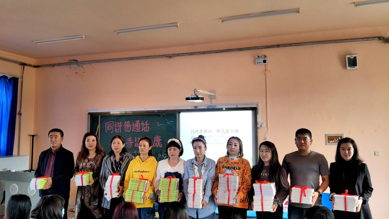 (李冰/文)为深入贯彻全国语言文字会议精神,大力支持学校的定点扶贫工作,切实发挥语言文字在脱贫攻坚中的重要作用,帮助贫困群众消除语言障碍,进一步促进定点帮扶地区普通话能力提升及应用文字达到基本规范要求,9月24日,学校教务处组织志愿团队前往我校定点帮扶地——杜蒙县一心乡开展“普及普通话,助力战脱贫”普通话推广扶贫工作。