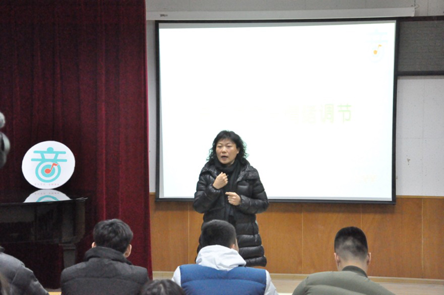 杜青青教授讲到用音乐抚慰人的情绪,音乐是最直接打动人情绪的一项听觉艺术。她在讲座中为同学们播放了一系列缓解情绪的音乐,教会同学们如何放松心情,改变心态,用音乐控制自己不好的情绪,让自己成为情绪的管理者。