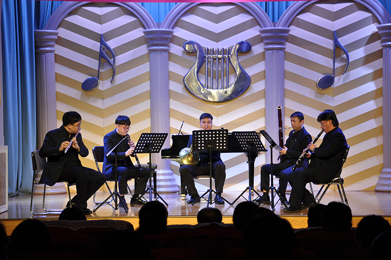 当晚工人文化宫音乐厅内彩灯高照,座无虚席,前来欣赏音乐会的广大音乐爱好者兴致勃勃地提前到场就座。晚6时,音乐会正式开始。管弦系支部党员教师先后演奏木管五重奏舞剧《红色娘子军》之《快乐的女战士》和《疆域风情》、巴松独奏曲《草原英雄小姐妹》、大提琴独奏乐曲《咏赋》、室内乐联奏《我爱你塞北的雪》《北大荒人的歌》《太阳岛上》等红色经典音乐,以及奥地利作曲家莫扎特的《D大调回旋曲》、捷克作曲家德沃夏克的《小提琴与钢琴奏鸣曲第四乐章》、匈牙利作曲家多普勒的《小提琴与长笛二重奏乐曲》等国外经典室内乐。参与演奏的党员教师们技艺娴熟,将每一首作品的内涵都展现得淋漓尽致,乐曲或悠扬婉转或高亢激昂,整个音乐厅萦绕着优美的旋律,观众如醉如痴,演出结束后音乐厅爆发出持久热烈的掌声。