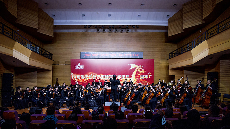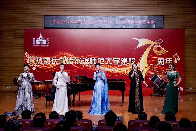 七十年史诗岁月如金,数代人奋斗刻骨铭心,是一代代哈师大人用“敦品励学、弘毅致远”的校训精神栉风沐雨、昂首阔步才换来了今日学校的生机蓬勃。春秋几度,桃李芬芳,母校恩情,山高水长,这里是放飞人生梦想最好的地方,是人生航船停泊的港湾,更是孕育一代代音乐学子成长的摇篮。本场音乐会精心筹备、制作精良、演绎精彩,倾注了全体音乐学院师生的心血。这场高水平的音乐会,用激动的、真挚的、美好的、震撼的音乐之声传递着音乐人对母校深切无限的祝福,描绘了新时代国家富强、民族昌盛的壮阔景象,讴歌了伟大的中国共产党,为母校70华诞献礼,为建党100周年添彩。