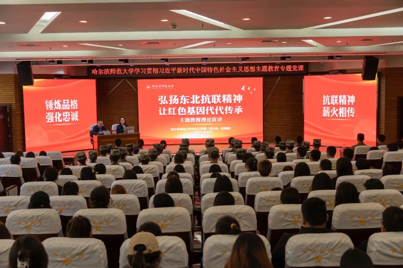 学生工作部(学生处、武装部)始终抓牢理论武装这个引领价值导向的“牛鼻子”,咬住理论学习关键点不松劲,坚持学校党委、机关党委、机关党支部、党员四级联动,打造“原文原著+理论辅导+案例解读”一贯式主题教育学习行动体系,制定主题教育理论武装“七个一”特色计划,即“抄一段原著原文”“办一堂案例教学”“讲一个领袖故事”“读一部领袖著作”“看一部红色影片”“谈一段心得体会”“做一项工作承诺”,推动理论武装转化为增智、强力、赋能、铸魂、动情、建制、成果的实际行动;部门负责人、党支部书记纷纷带头讲专题党课,带领党员、干部深入学习党章、党的二十大精神、省十三次党代会精神及习近平总书记对于在全党大兴调查研究的重要指示精神,到红色教育基地、烈士陵园等地参观见学,在缅怀英烈中砥砺前行;举办“铸牢中华民族共同体意识”主题升旗仪式,将爱国情怀厚植心田;开展“弘扬东北抗联精神 让红色基因代代传承”理论宣讲活动,用领袖故事坚定理想信念。