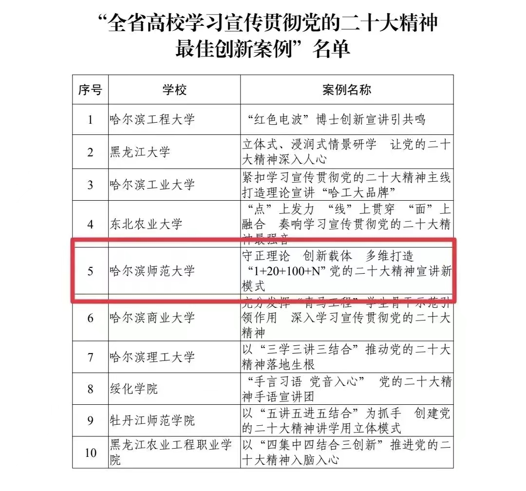 学生工作部(学生处、武装部)坚持立德树人根本任务,强化以生为本理念,通过线上线下、课内课外等方式构筑育人格局、建强育人队伍、打造育人品牌,切实把主题教育学习成效转化为育人实践的强大动力。成立学工战线百人宣讲团,开设“二十大精神,学贯宣”理论学习推送专栏、辅导员心语专栏、基层学院动态专栏,打造“时代新人铸魂工程”特别栏目,形成立体化网络思政平台矩阵;持续加大辅导员引进力度,完善辅导员培训制度,设立辅导员专项课题,遴选辅导员名师工作室,不断提升辅导员队伍能力本领和干事创业的精气神;组织心理健康教育中心教师参加志愿服务云课堂录制,到黑龙江省高级人民法院讲解青少年心理问题;为绥化市兰西县、哈尔滨市松北区、31693部队官兵提供公益心理咨询服务,建立“立足学生、服务学校、奉献社会”的发展辐射链条,始终坚持立足岗位做贡献,以新气象、新作为推动学校高质量发展和龙江振兴发展。