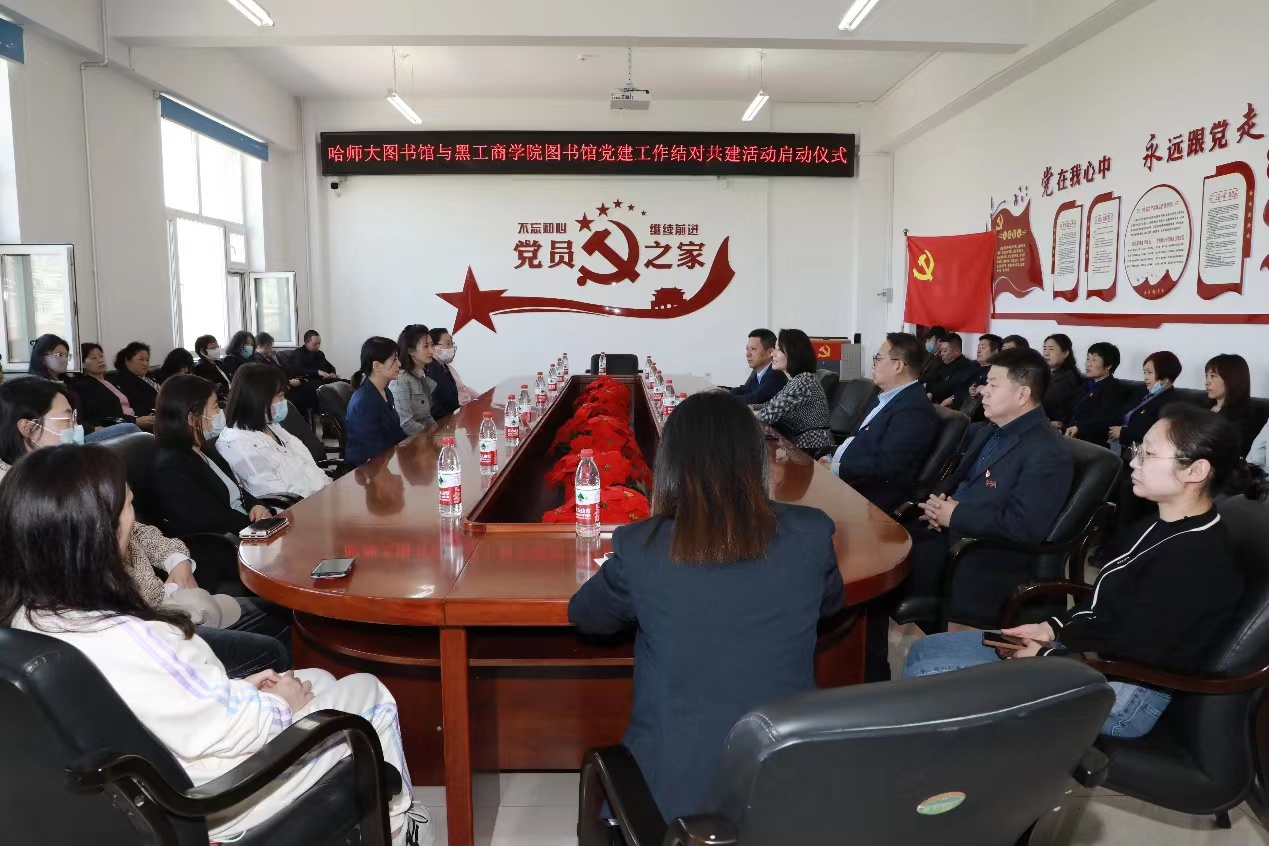 (陈晨/文)为深入学习贯彻习近平新时代中国特色社会主义思想,牢牢把握“学思想、强党性、重实践、建新功”主题教育总要求,贯彻落实省委教育工委关于黑龙江省公办高校与民办高校党建结对共建的工作要求,切实提高基层党建工作水平,促进党建质量提升,5月17日上午,我校图书馆与黑龙江工商学院图书馆党建结对共建活动启动仪式在图书馆党员之家举行。我校党委组织部副部长张巍,图书馆党委书记乔峰、馆长杨革,黑龙江工商学院组织部部长谷铮、馆长兼直属党支部书记张元梅,以及两馆全体党员出席启动仪式。启动仪式由乔峰主持。