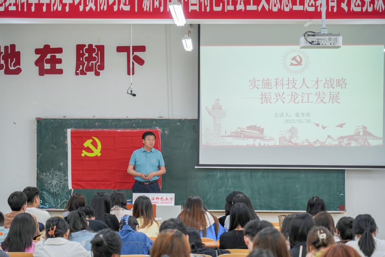 (宋歌/文)为深入贯彻落实党的二十大精神,扎实推进学习贯彻习近平新时代中国特色社会主义思想主题教育,引导学生厚植家国情怀,增强投身振兴龙江的使命与担当,地理科学学院于5月30日下午在理工三号楼220室举办学习贯彻习近平新时代中国特色社会主义思想主题教育专题党课——实施科技人才战略,振兴龙江发展。本次活动由地理科学学院院长张冬有主讲,全体学生党员参加。