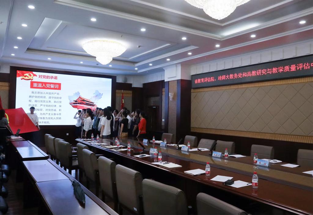 (刘小琳/文)为弘扬伟大建党精神,引领广大党员干部铸牢政治忠诚、强化责任担当,推动学习贯彻习近平新时代中国特色社会主义思想主题教育走实走深。6月27日下午,在行知楼0107会议室,黑龙江省教育评估院院长景丽英一行11人来到拼搏在线登录,与我校教务处和高教研究与教学质量评估中心全体党员联合开展“联学共建凝合力,主题党日践初心”主题党日活动。会议由教务处处长姜洪泉主持。