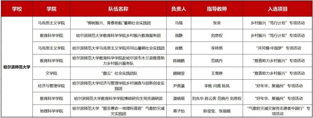 教育科学学院赴哈尔滨市木兰县推普助力乡村振兴服务队、文学院“傲云”社会实践团队入选“推普助力乡村振兴”专项活动。