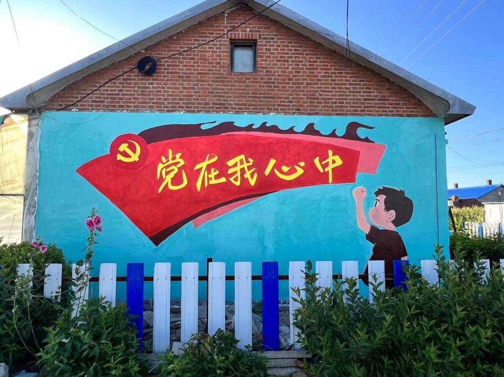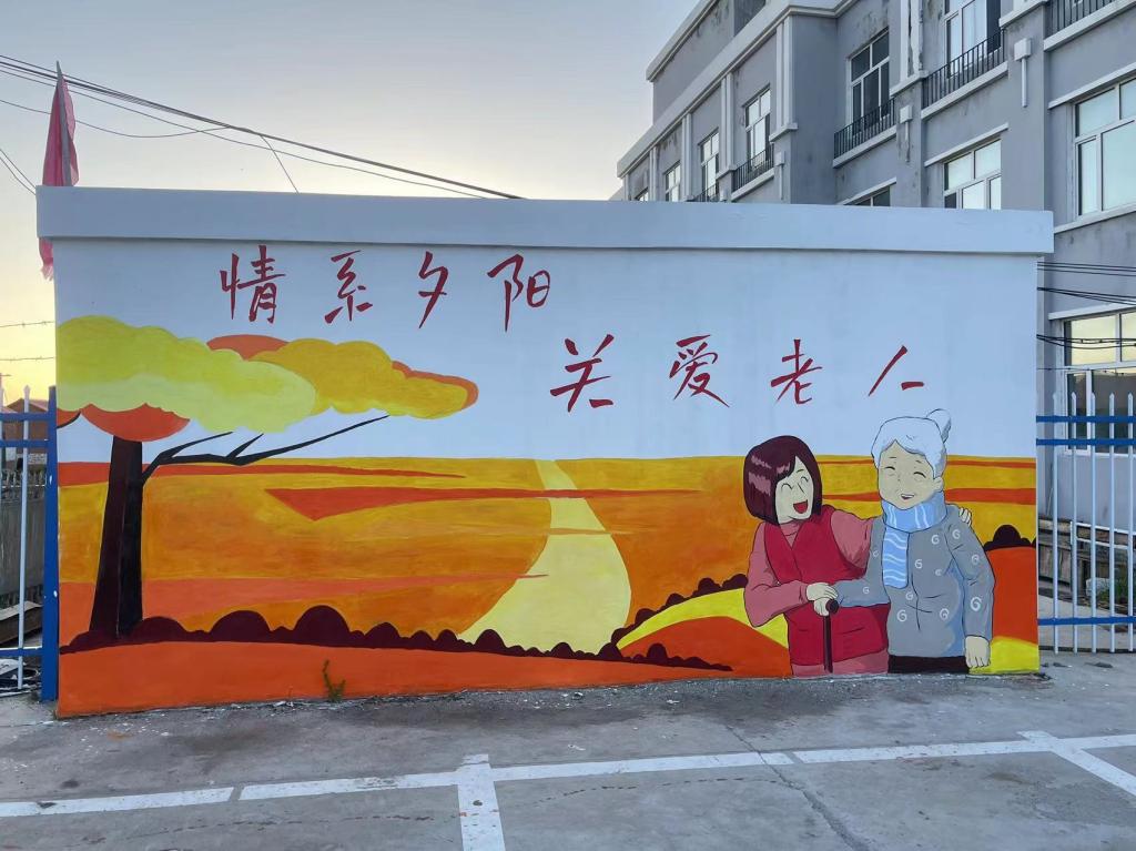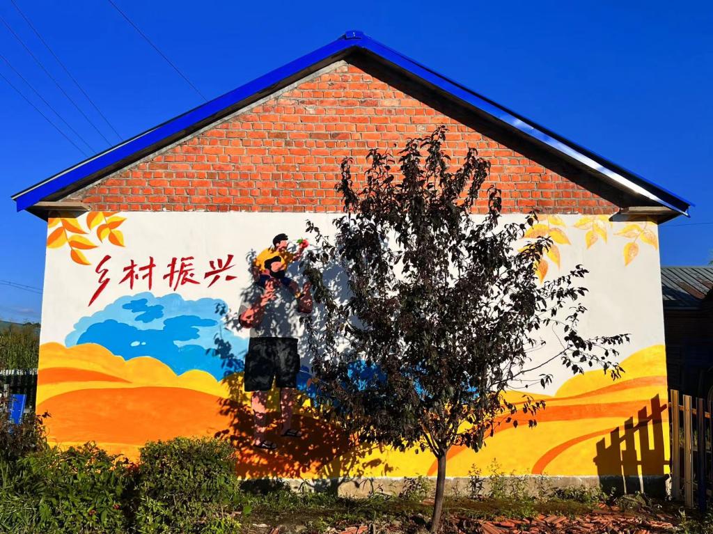 彩绘内容紧紧美化乡村、乡村党建、关爱老人为主题主题的三面彩绘墙,一墙一文化,一画一风景,在绘制过程中,吸引许多当地村民驻足,纷纷来到彩绘墙前观看创作,给学生点赞!同学们拿起手中的画笔,勾勒生动的线条,填充鲜亮的颜色,历时10个小时,30度的高温,彩绘面积约达65平方米,3幅栩栩如生的彩绘作品跃然呈现在墙面上。团队成员仇丽晶3年前还在上高中就来过新乐乡画过彩绘墙,3年后她以大学生的身份再次描绘,笔触更专业了,虽然彩绘过程中伴随汗水,最终看到为家乡绘制的彩绘墙,一切付出都是值得的。