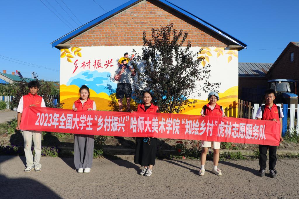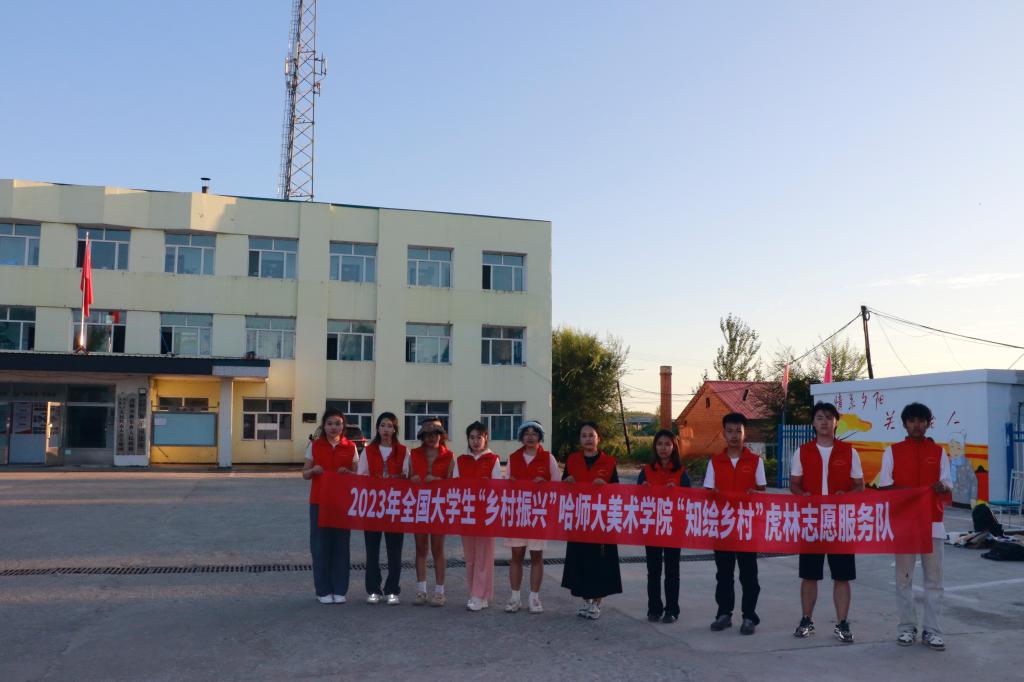 美术学院积极响应校团委2023年暑期“三下乡”社会实践号召,在学院党委领导下、学院团委指导下,由美术学院副处级辅导员王慧带队,10名师生组成“知绘乡村服务社”,赴虎林新乐乡开展志愿服务活动。成员中有7名志愿者就来自虎林,用自己的双手参与家乡美化更有意义!