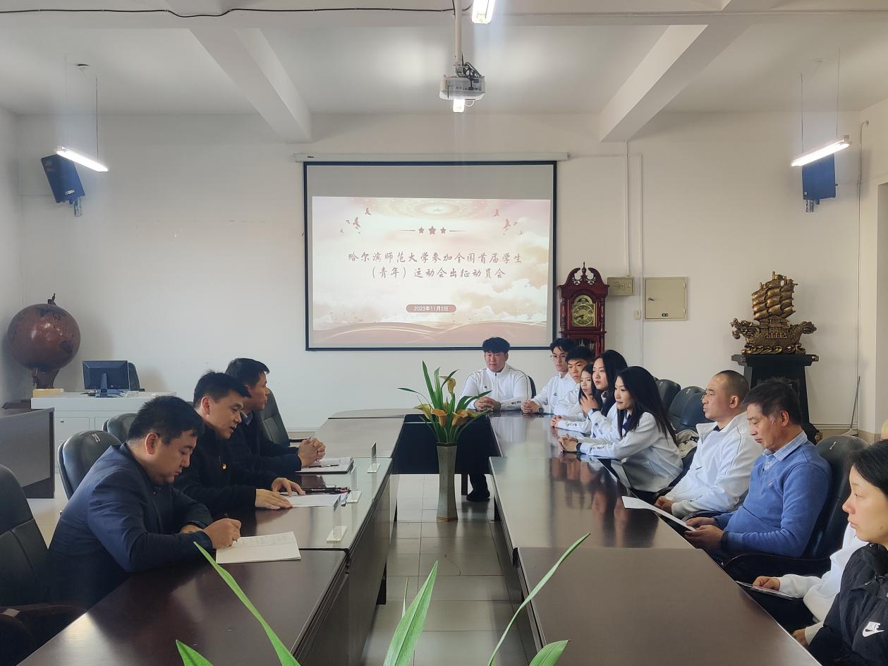 11月3日下午,体育科学学院在体育楼401召开我校参加全国首届学生(青年)运动会出征动员会,体育科学学院党委书记韩大伟、院长孙长良及13名参赛师生参加会议,副院长隋东旭主持会议。