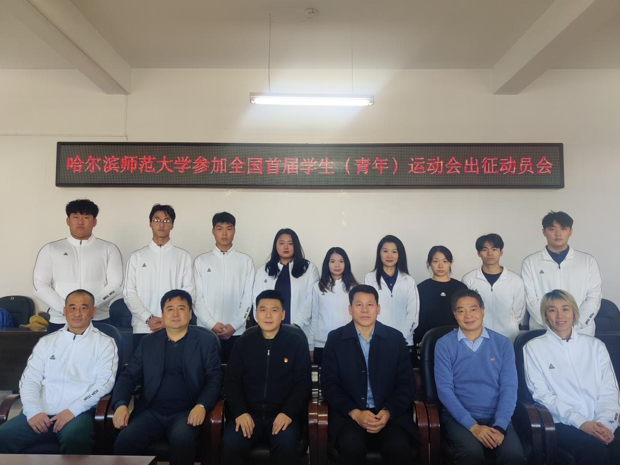 (隋东旭/文)中华人民共和国第一届学生(青年)运动会将于11月5日至15日在广西举办。本次比赛黑龙江省代表团(校园组)由来自全省各高校和市(地)的187名运动员和教练员组成,经过省内严格选拔和推荐,最终我校13名师生入选代表团。其中,体育科学学院副院长隋东旭担任代表团团部成员,田径教研室朱立新、武术教研室付艳敏、水冰教研室常晓铭分别担任大学田径代表队、大学武术代表队、大学游泳代表队教练员,6名田径运动员、2名武术运动员、1名游泳运动员入选所在项目代表队,他们将代表我省出征中华人民共和国第一届学生(青年)运动会,在学青会的赛场上展示哈师大学子的风采。