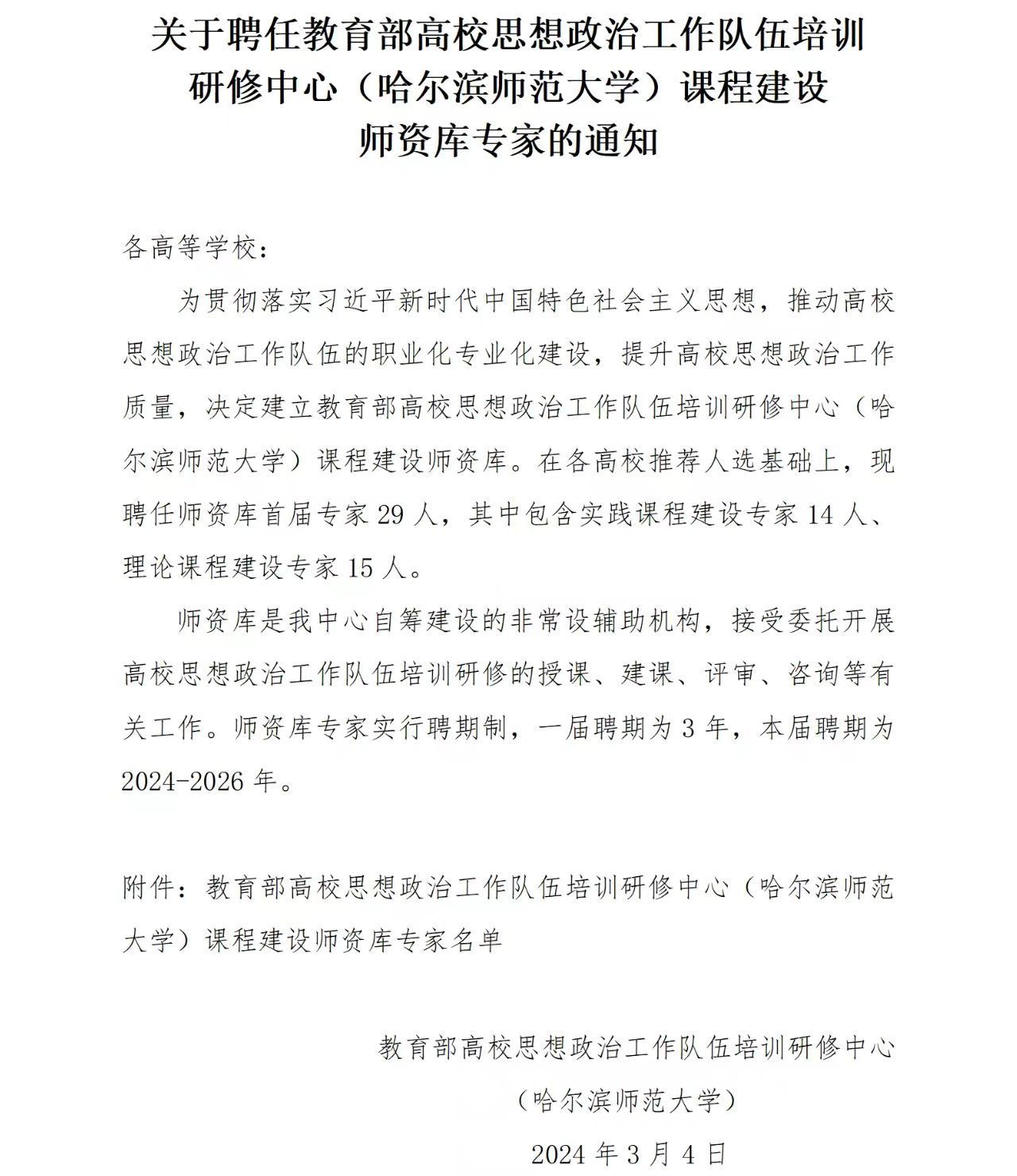 课程建设师资库的成立,是中心为了建立完善的高校思政工作队伍培训研修班核心课程体系、推动高校思政工作队伍职业化专业化建设、提升高校思政工作质量而实施的新举措。下一步,中心将组织师资库专家参与省高校思政工作队伍培训研修班授课工作,开展课程体系和精品课程建设,逐步构建实施“时代新人铸魂工程”新格局。