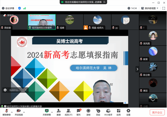 观看讲座的社员及考生家长纷纷表示,吴林老师的讲座犹如及时雨,对2024年新高考变化的解读内容充实全面,讲解通俗易懂,尤其是对于一些家长非常关心的问题讲解的非常透彻,通过他的答疑解惑,大家对于即将开始的高考志愿填报有了更加明确的认知与理解。