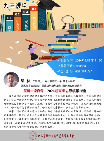 (吴鹏/文)面对2024年高考录取的新变化,如何在考试后填报志愿,如何规避填报中的录取风险。6月2日,九三学社拼搏在线登录委员会安排高考志愿填报和高校专业选择权威专家、九三学社社员吴林博士通过腾讯会议举办了第九期“九三讲坛”暨《2024新高考志愿填报指南》公益讲座。省政协委员、委员会周嘉主委主持本次讲座。