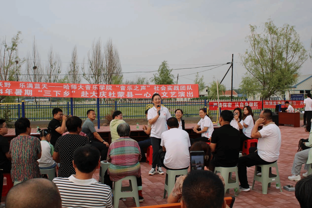 在学院党委的精心统筹部署下,在一心乡党委和政府的大力支持下,音乐学院“音乐之声”社会实践团队赴大庆杜蒙县一心乡开展暑期“三下乡”社会实践活动圆满结束。奋斗是青春最亮丽的底色,行动是青年最有效的磨砺。通过深入农村,师生们不仅丰富了自身的阅历、开拓视野、提升了演艺水平,更坚定了为乡村振兴贡献力量的决心。作为新时代青年大学生应当坚定立场,永远跟党走,在未来的日子里,不断发挥音乐学院的专业优势,以实际行动共筑中国梦!